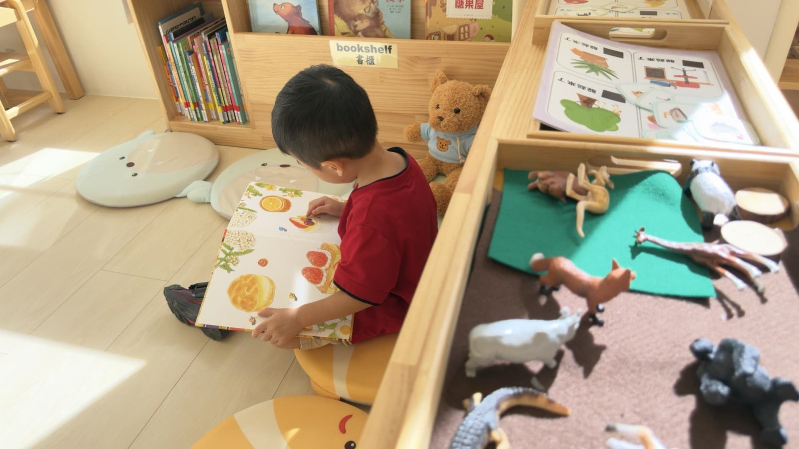 透過繪本、語音書啟發語言與創意。長廊兩側陳列著來自世界各地的繪本,孩子在這裡翻閱故事、聆聽聲音,在文字與圖畫之間打開對世界的想像。閱讀不只是識字,更是通往理解與共感的橋樑。